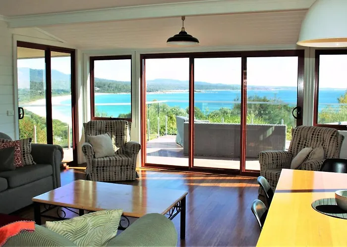 Situated within 5 km of Peron Dunes, 2-bedroom Dolphin Lookout Cottage - Amazing Views Of The Bay Of Fires features a terrace with views of the sea.